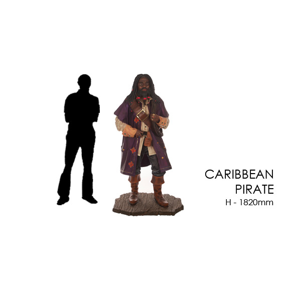 Our Caribbean Pirate Prop dressed in his best pirate gear, is always on the lookout for loot! He looks great in any Pirate or Beach theme, just be careful to keep your pieces of eight hidden from view!