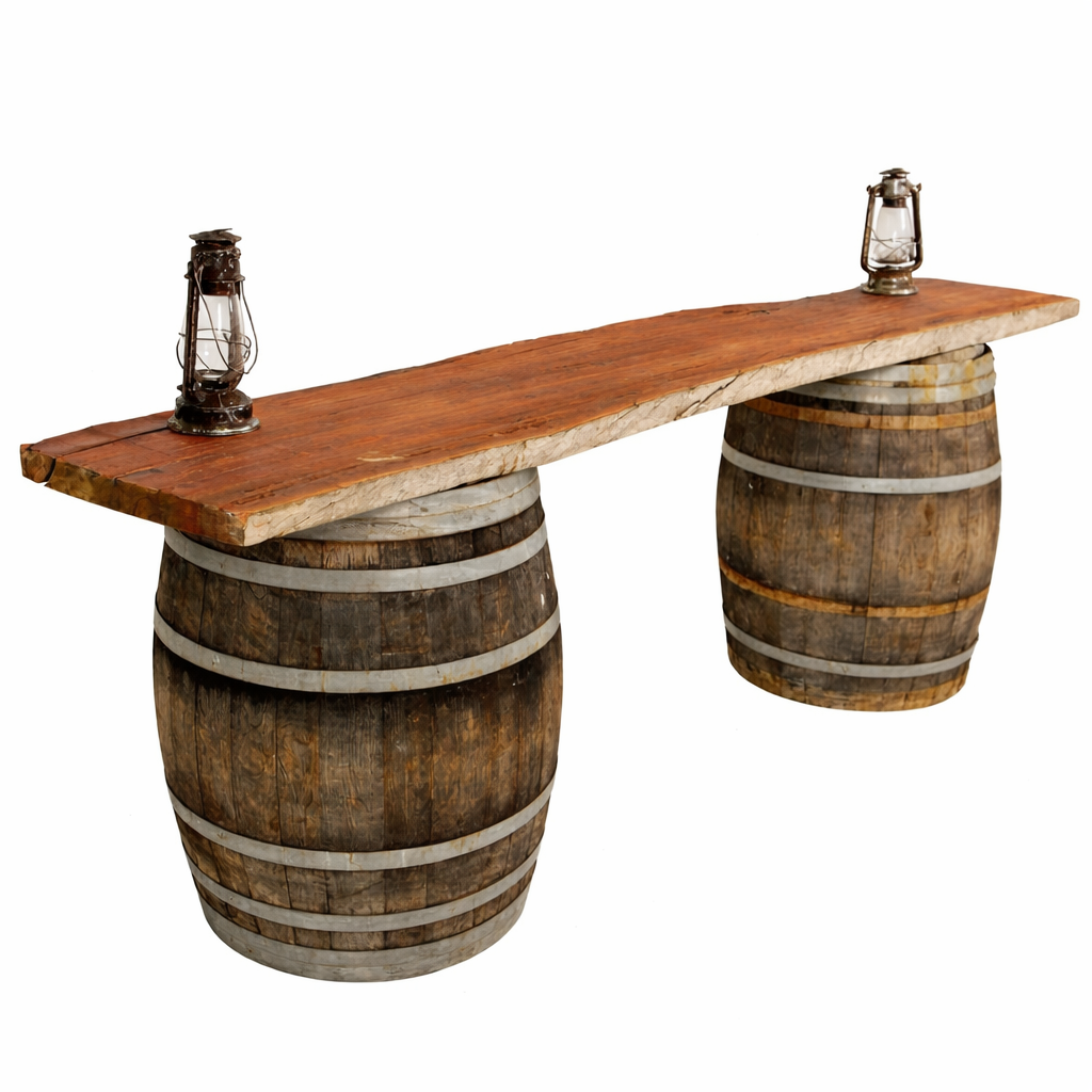 This unique looking Barrel Bar Table will gain attention in any situation and really stands out in a Western or Apres-Ski theme where wooden furniture and props are a large part of the appeal.