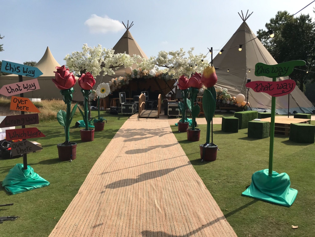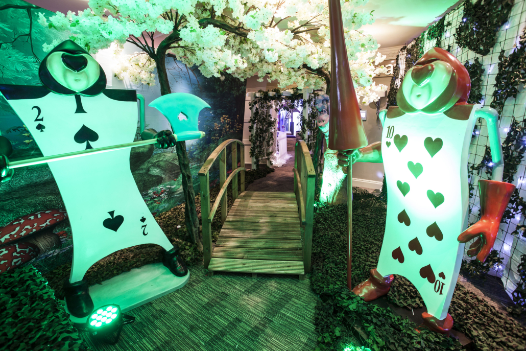 Lead your guests on a merry dance through our themed entrance arch, following crazy signs that read ‘that way, that way’ or ‘up and down’, until they reach their destination, a fantastical land that we’ve created just for you.