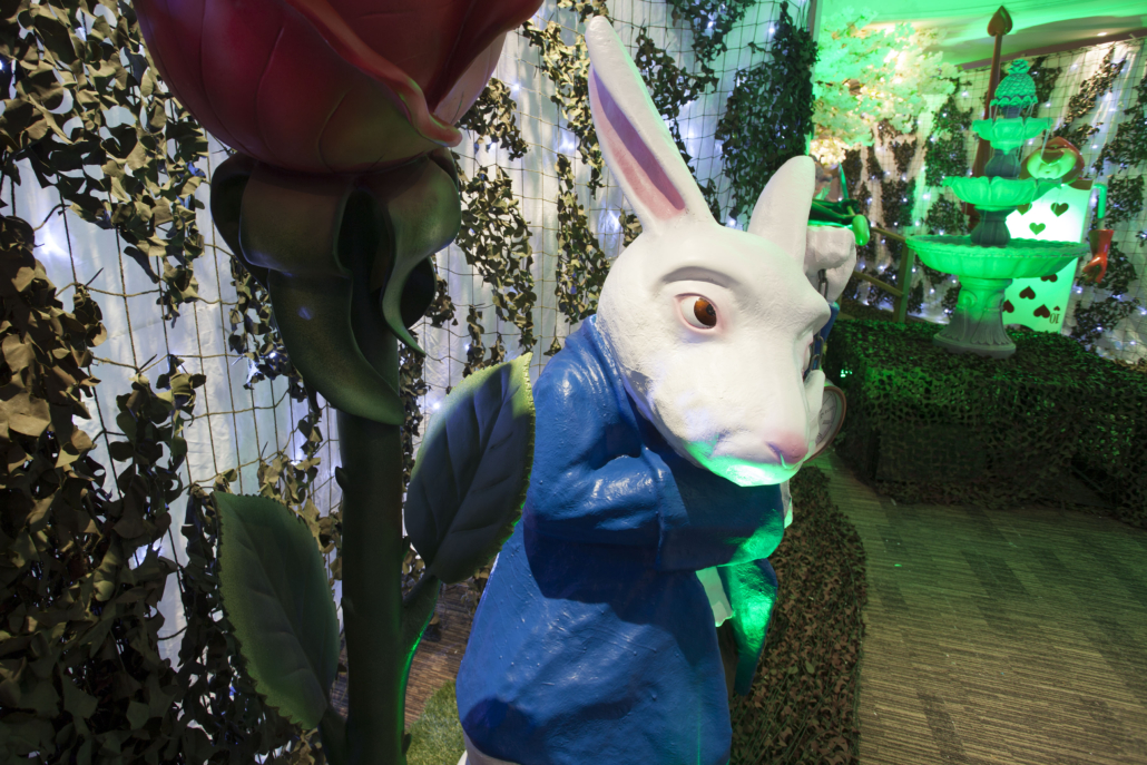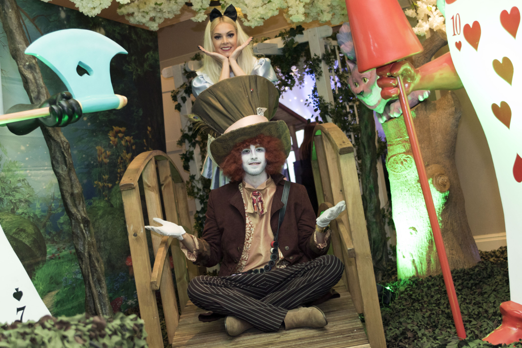 If that doesn’t make them “curiouser and curiouser”, you’ll be as smug as the Cheshire cat with our vast array of larger than life props that include a giant ‘drink me’ bottle, roses, playing cards and the White Rabbit himself.