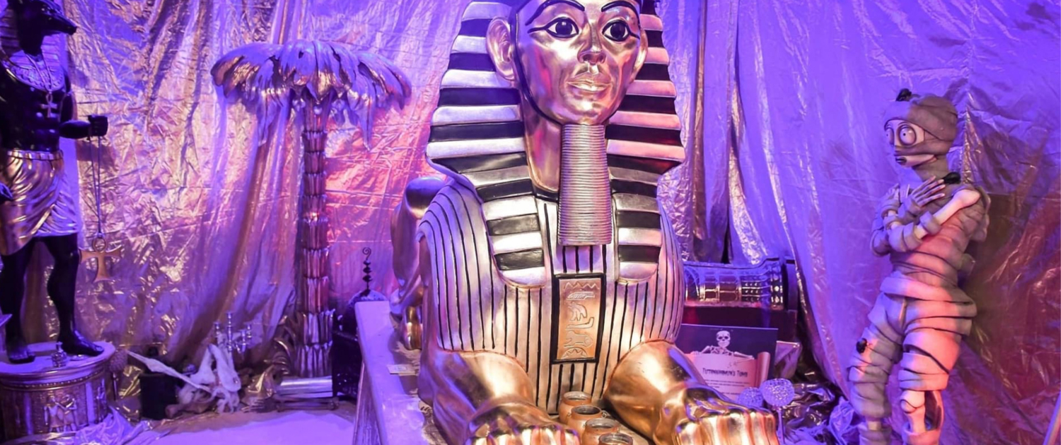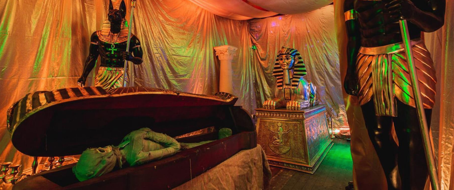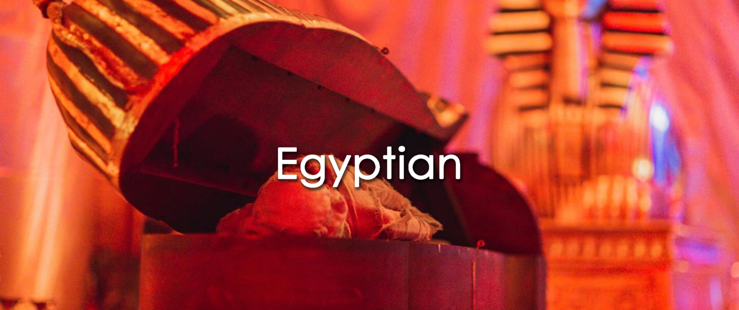 Travel with us to ancient Egypt for an evening of mighty gods, intricate architecture and fun around every corner as we present your very own Egyptian themed event. Our room transformation team will unravel their finest gold and white fabrics while our prop team will search the pyramids for some props fit for an Egyptian king.