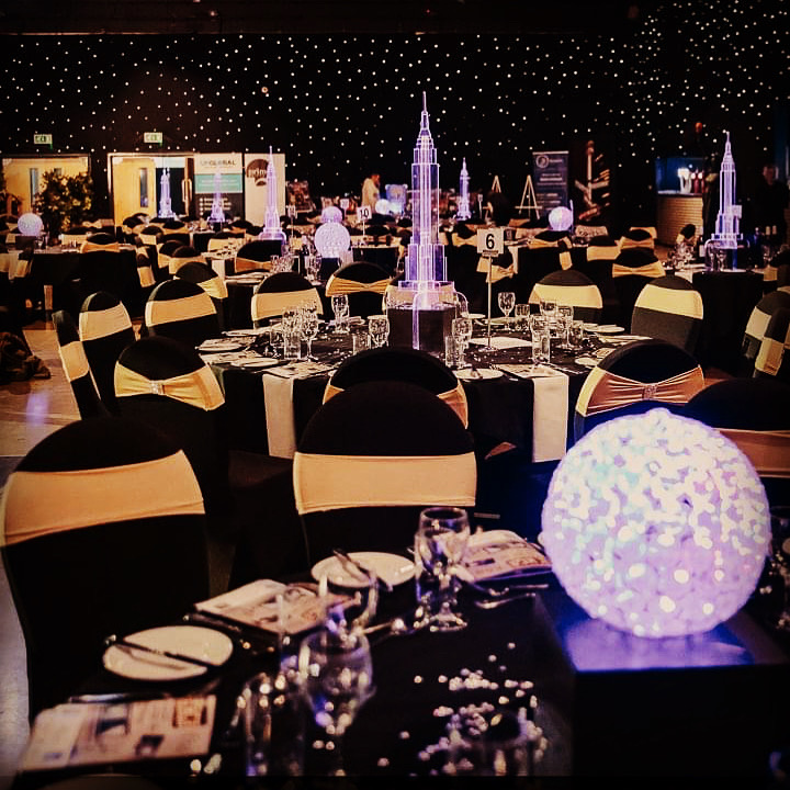 All-in-one delivery: props, draping, AV, lighting, venue transformation
