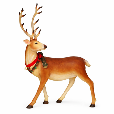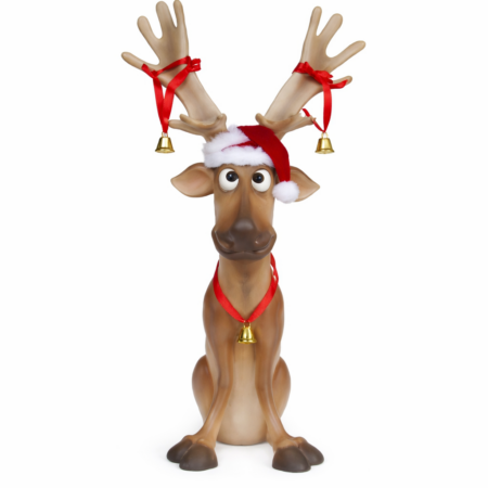 Snow is falling from above, traditional streetlamps light the way to one side of the room where our magnificent frozen wonderland stage set stands tall, with its twinkling white star cloth and grand ice turrets. In another corner our life sized reindeer stand beside a magical silver sledge – perfect for photo opportunities later.