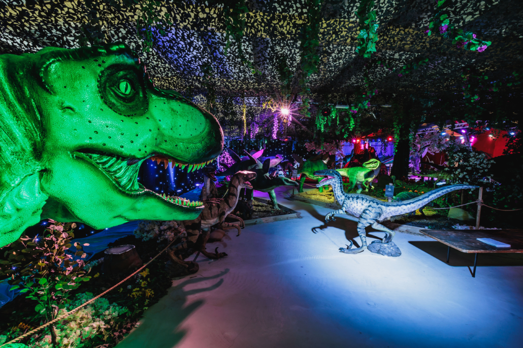At the heart of the installation was our extensive collection of dinosaur props — one of the largest hireable ranges in the UK.